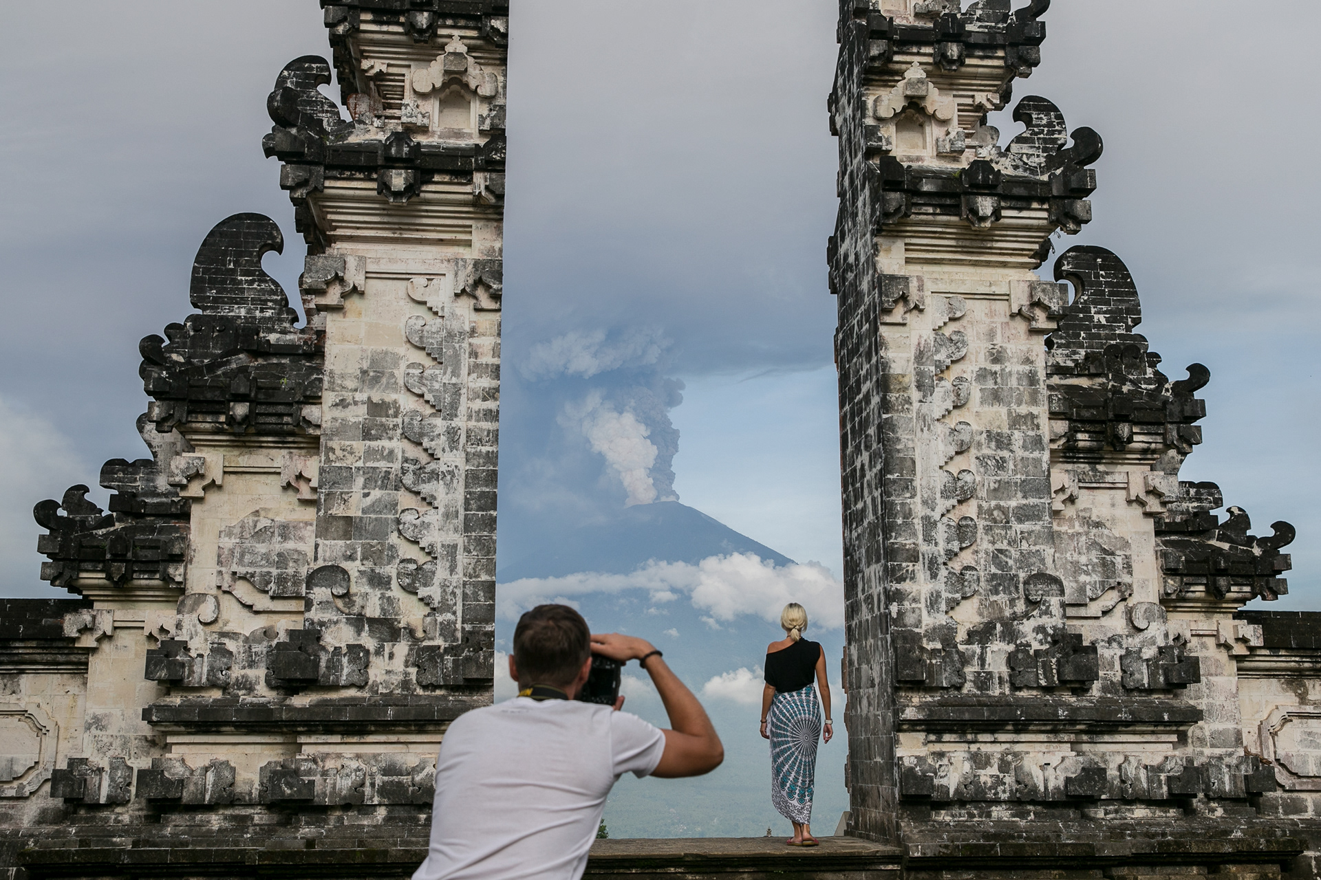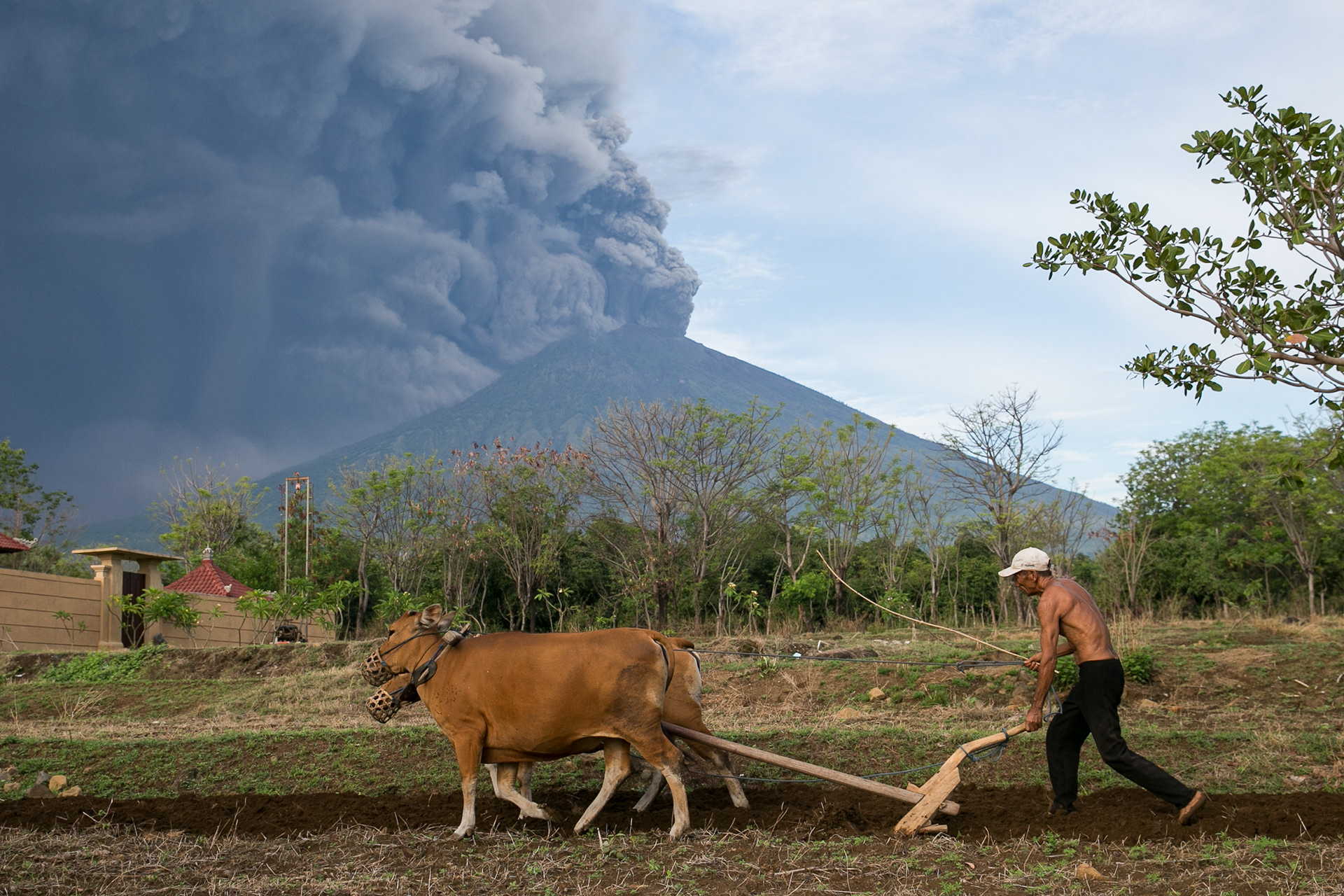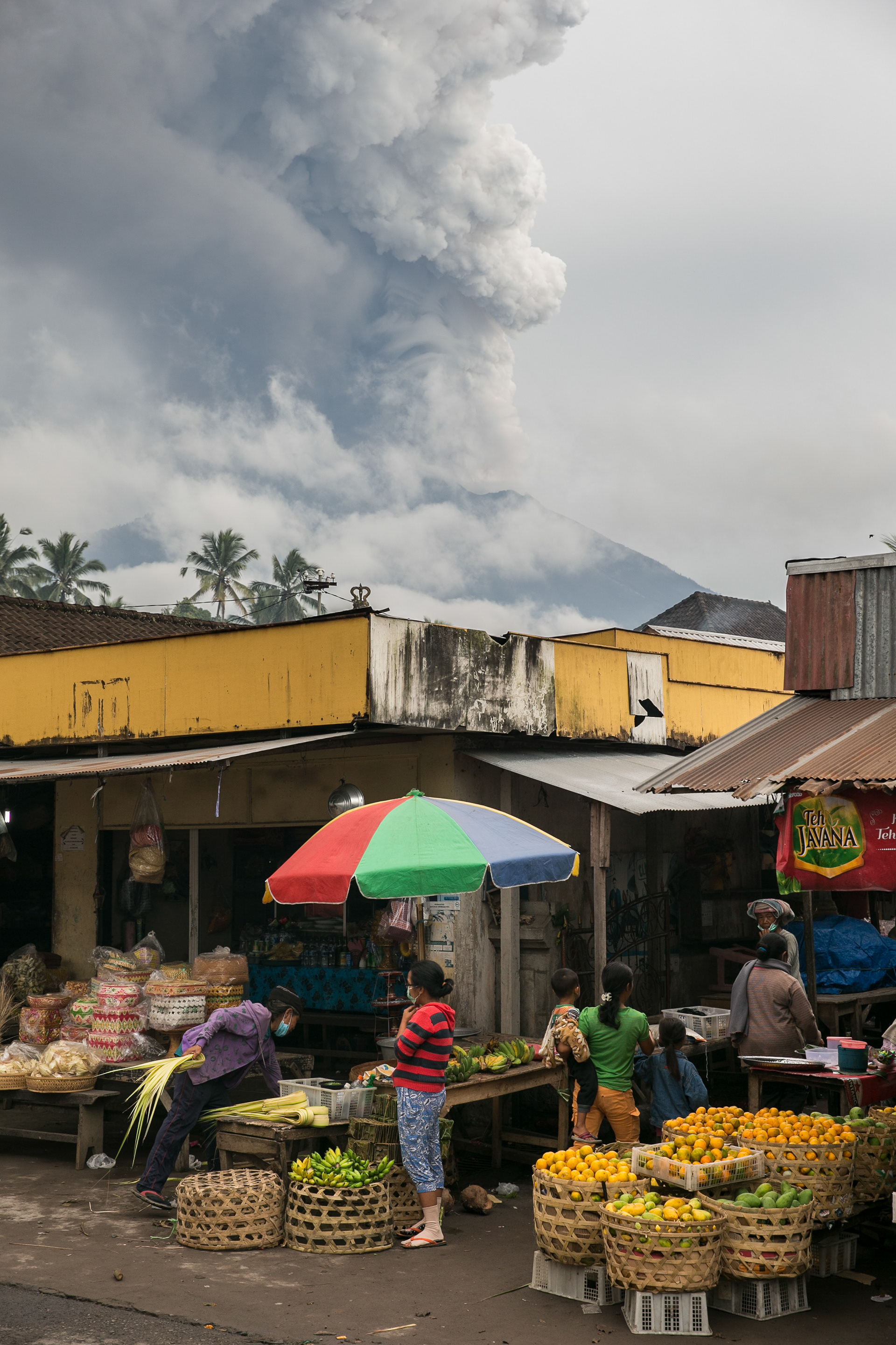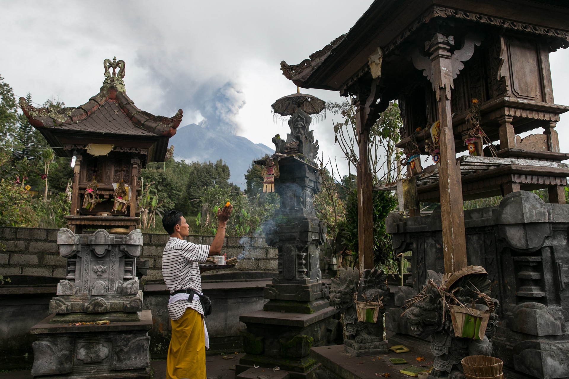 Mount Agung, a volcano on the island of Bali in Indonesia, erupted in late November 2017, causing thousands to evacuate, disrupting air travel.